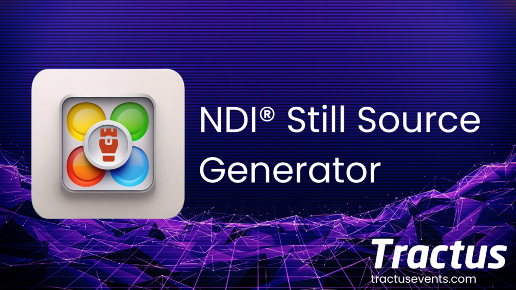 The Tractus NDI® Still Source Generator is a simple Windows app that will output a selected image as a named NDI source. It supports JPG, PNG, and BMP images, including transparency.